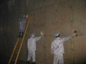 (3)清洗和检修人员进入池内工作 刷洗六面体水池(箱)横、竖各三遍,检修人员对水池(箱)的管道及浮球、水位控制器进行维修。清洗完毕后排尽水池(箱)中的污水,再向水池(箱)内洒消毒剂。