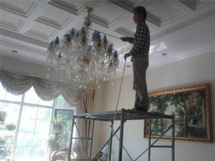 广州市天河区员村、专业水晶灯清洗公司、大型吊灯清洁除尘